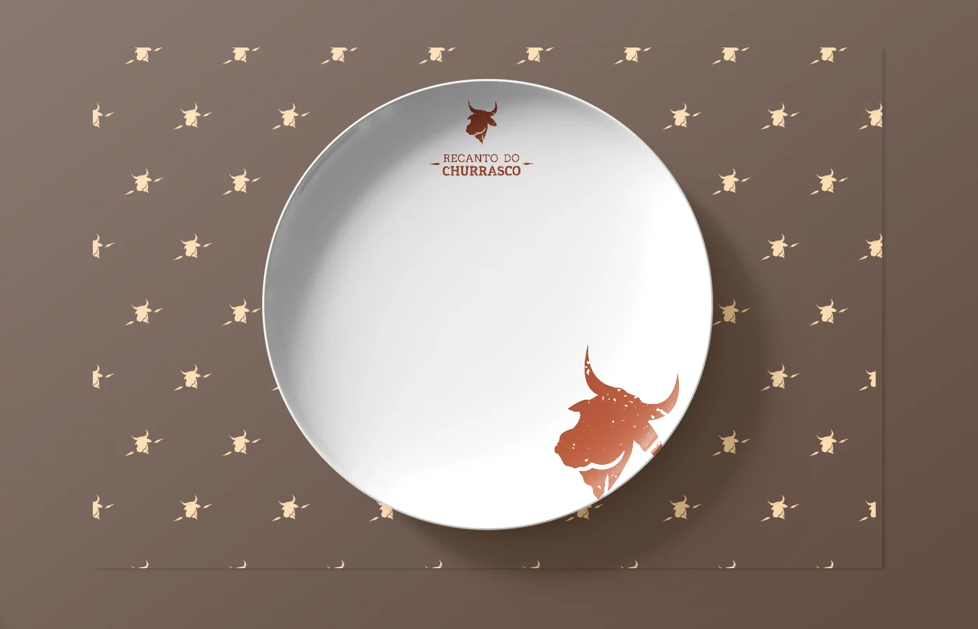 Desenvolvemos a identidade visual do restaurante com o propósito de traduzir, de forma rústica e moderna, a essência do universo do churrasco. Buscamos criar uma marca pragmática e de fácil assimilação pelo público-alvo. O signo do boi foi adotado por sua identificação imediata, enquanto os traços contínuos e agudos fazem referência direta às ferramentas de corte. A textura de parede rústica reforça a conexão com a tradição e a autenticidade do ambiente.